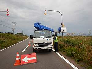 照明や標識等の道路付属物の現状を把握し、腐食や変形を早期に確認します。劣化の状況から対策の要否を判定することによって未然に事故を防止し、安全かつ円滑な道路交通を確保を図るために実施します。